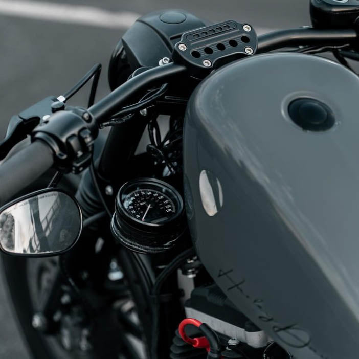 - Replaces your stock H-D Sportster & Dyna top clamp with the built-in "speedometer ring" mount.